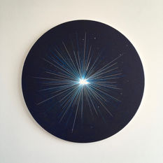 Trāṭaka is a form of meditation where one stares at a single point such as a small object, black dot or candle flame. These paintings were made to achieve a similar effect.